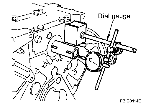 ^ Using a dial gauge, measure the clearance between the thrust bearings and the crankshaft arm when the crankshaft is moved fully forward or backward.