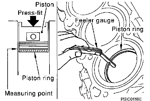 ^ If out of specification, replace piston ring. If gap still exceeds the limit even with a new ring, re-bore cylinder and use oversized piston and piston ring.