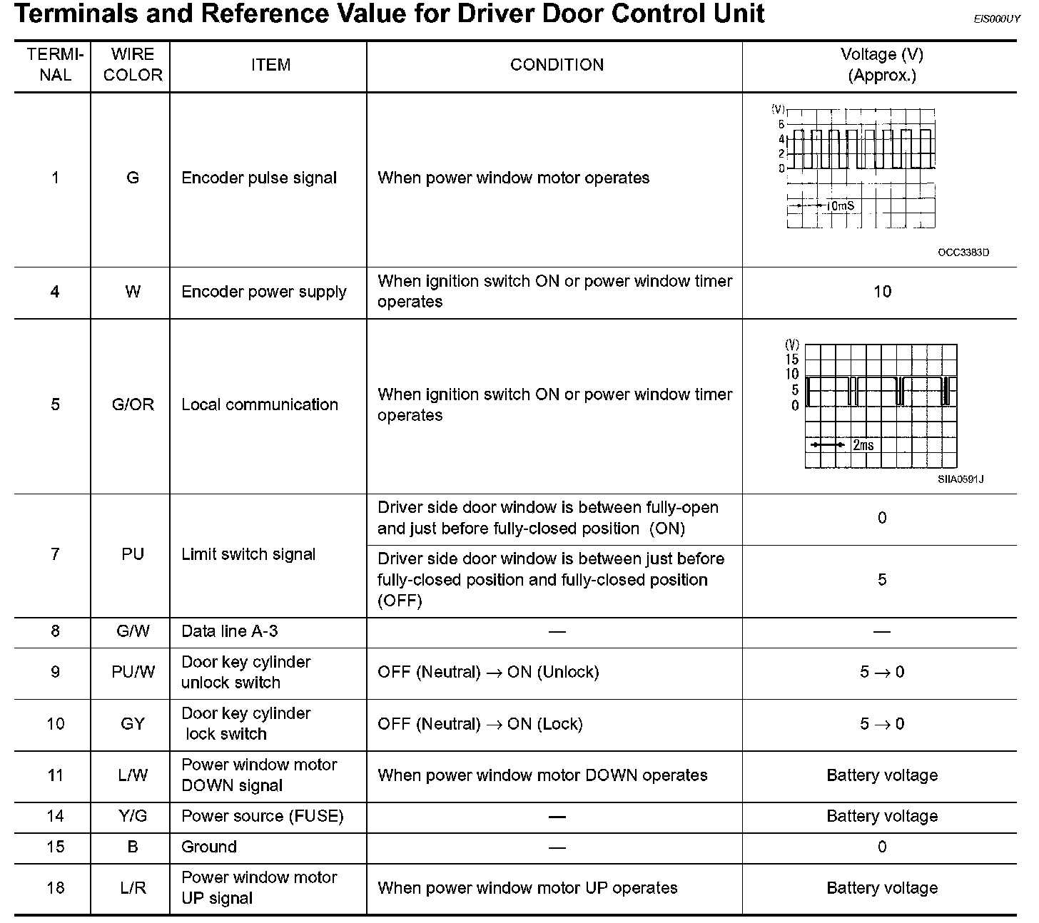 Terminals And Reference Value For Driver Door Control Unit: