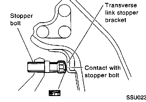 3. Check stopper bolt head to see whether it contacts stopper bracket at specified outside wheel angle. If not, adjust stopper bolt to contact stopper bracket at the correct angle.