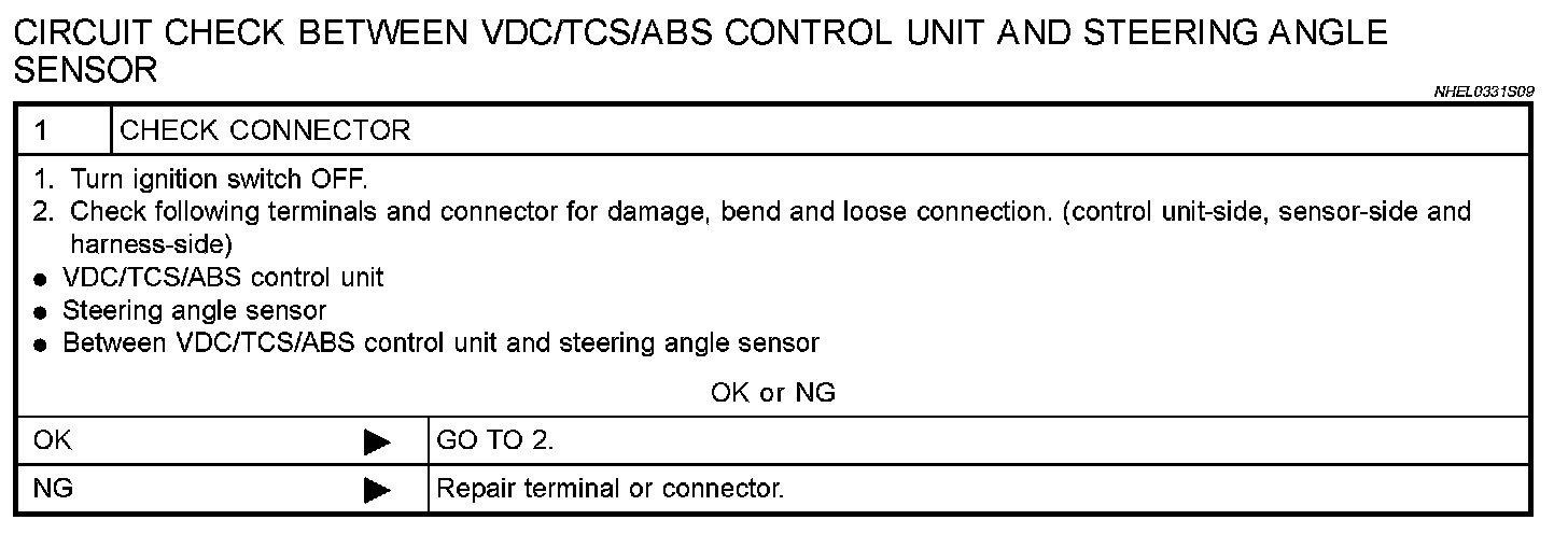 Circuit Check Between VDC/TCS/ABS Unit & Steering Angle Sensor
