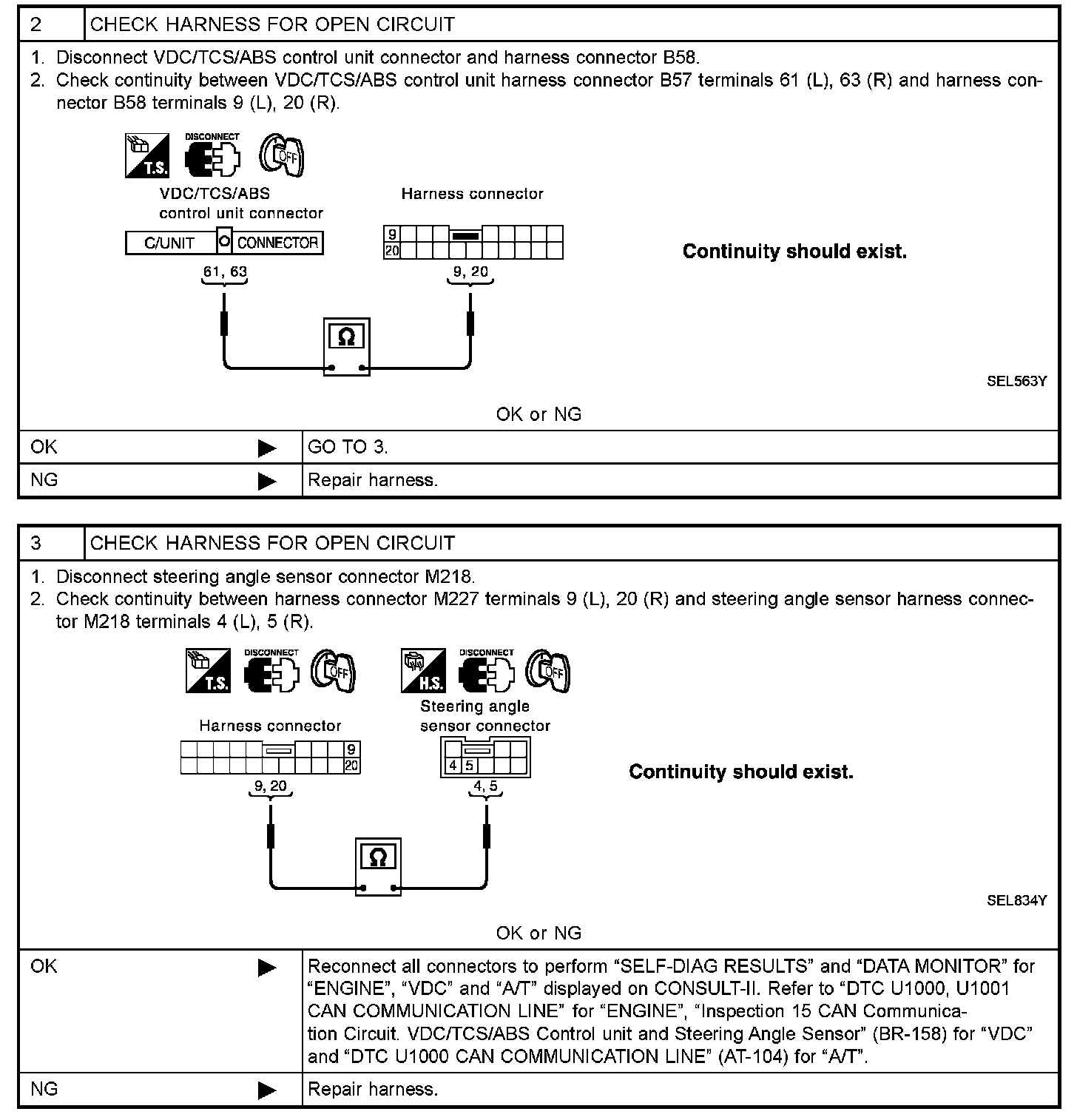Circuit Check Between VDC/TCS/ABS Control Unit And Steering Angle Sensor (Steps 2 - 3):