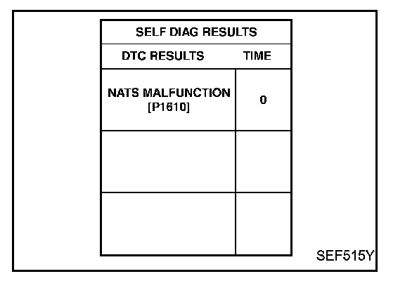 Initialization IVIS (Infiniti Vehicle Immobilizer System - NATS)- If the security indicator lights up with the ignition switch in the "ON" position or "NATS MALFUNCTION" is displayed on "SELF-DIAG RESULTS" screen, perform self-diagnostic results mode with CONSULT-II using IVIS program card. Refer to "IVIS (Infiniti Vehicle Immobilizer System - NATS)"