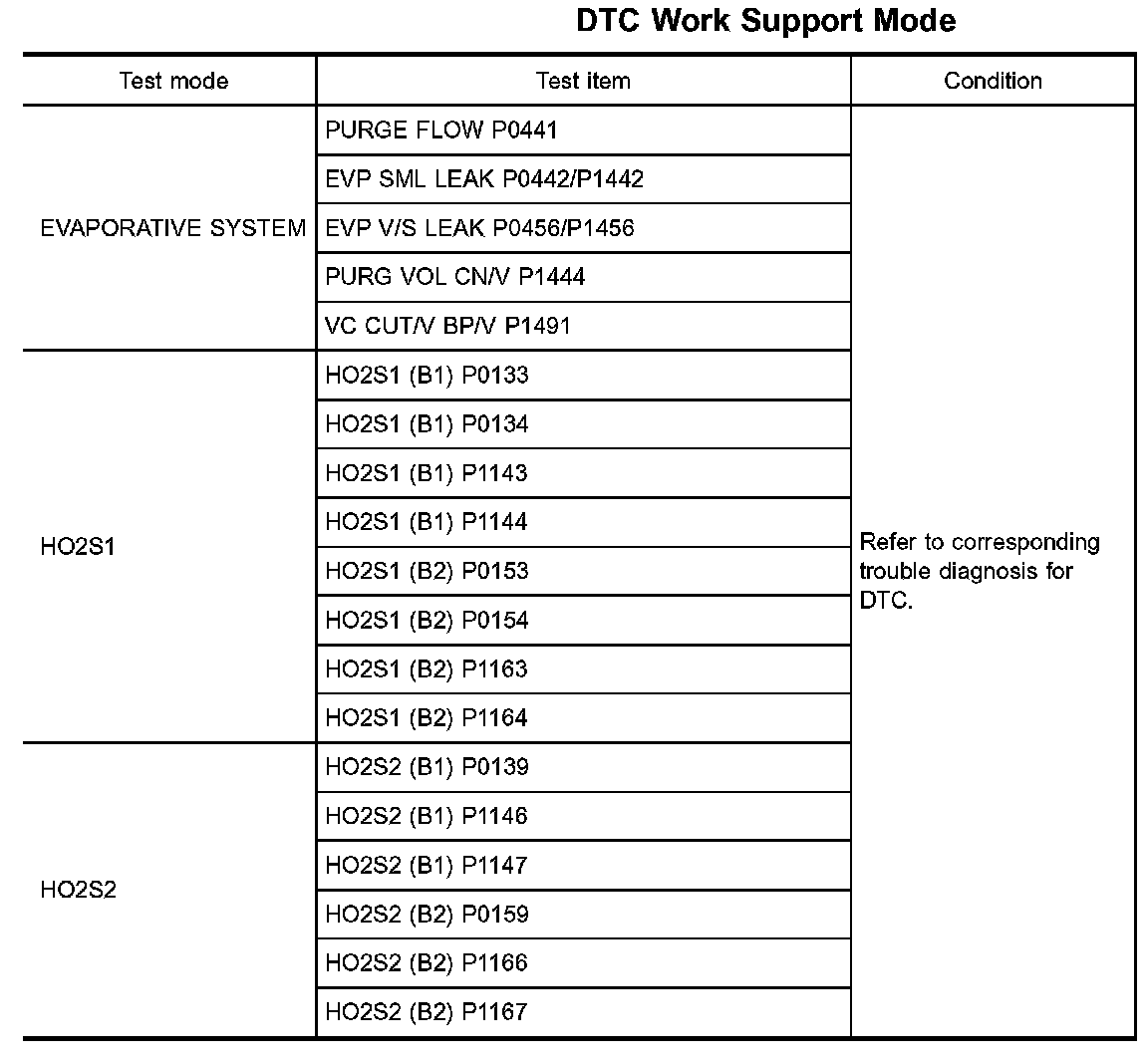 DTC Work Support Mode: