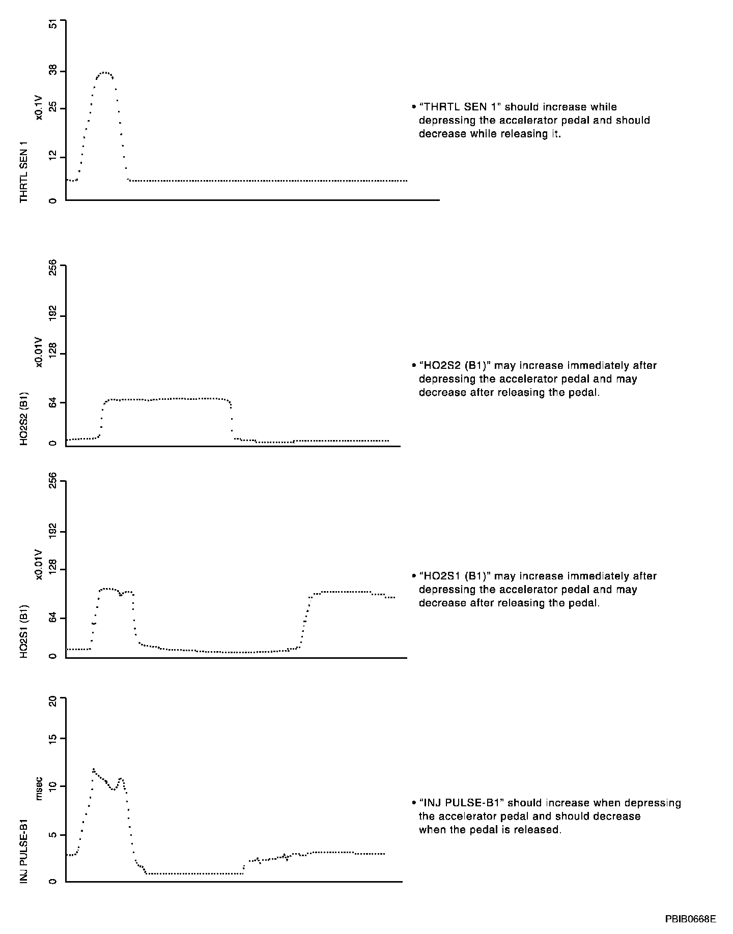 ENG SPEED, MAS A/F SE-B1, THRTL POS SEN, HO2S2 (B1), HO2S1 (B1), INJ PULSE-B1