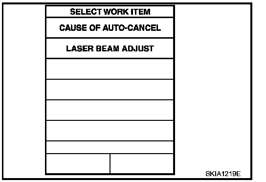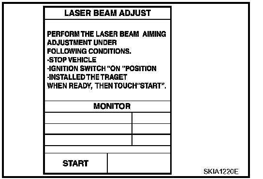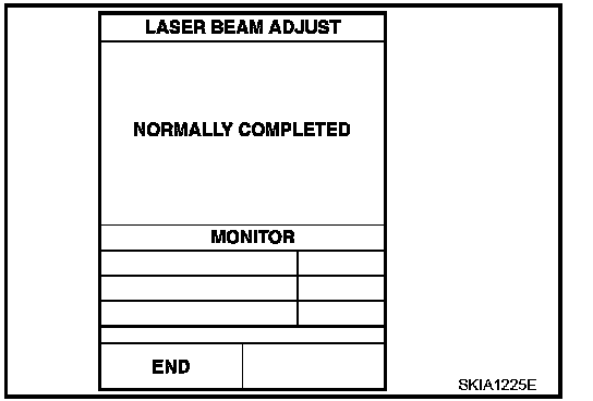 CAUTION: Complete all the procedures once "LASER BEAM ADJUST" mode is entered in CONSULT-II. When the procedure is discontinued, the ICC system is inoperable.