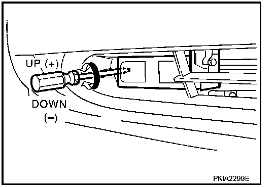 2. Adjust the sensor following the procedure on CONSULT-II (Turn manually the screw for up-down position adjustment. ICC sensor automatically adjust the right-left position).
