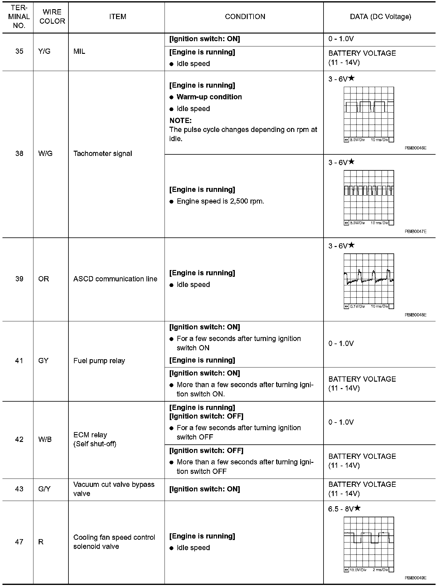 CAUTION: Do not use ECM ground terminals when measuring input/output voltage. Doing so may result in damage to the ECM's transistor. Use a ground other than ECM terminals, such as the ground.