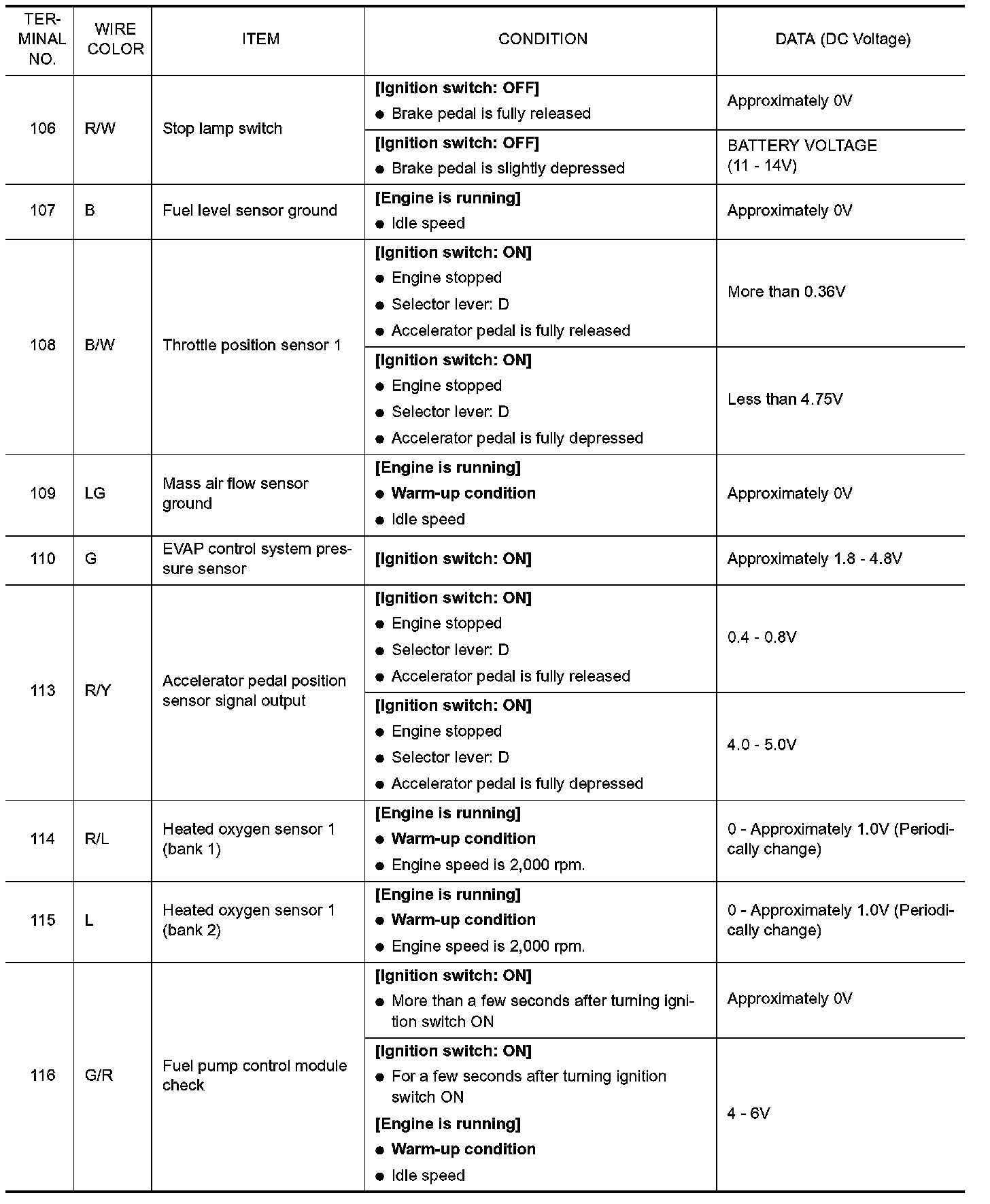 Specification data are reference values and are measured between each terminal and ground.