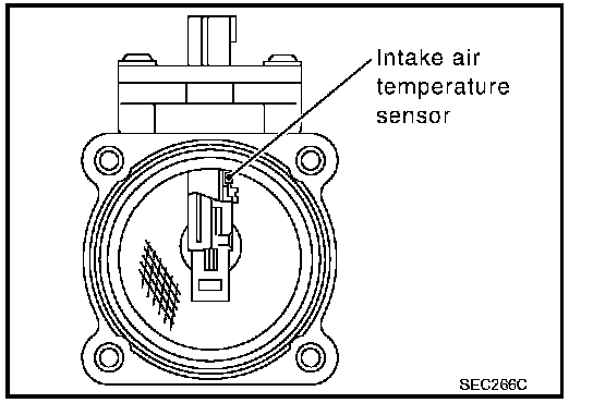 The mass air flow sensor is placed in the stream of intake air. It measures the intake flow rate by measuring a part of the entire intake flow. It consists of a hot film that is supplied with electric current from the ECM. The temperature of the hot film is controlled by the ECM a certain amount. The heat generated by the hot film is reduced as the intake air flows around it. The more air, the greater the heat loss.