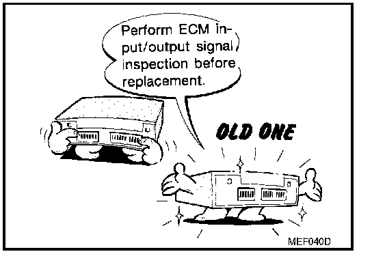 - Before replacing ECM, perform ECM Terminals and Reference Value inspection and make sure ECM functions properly. Refer to EC-97, "ECM Terminals and Reference Value". Pinout Values and Diagnostic Parameters