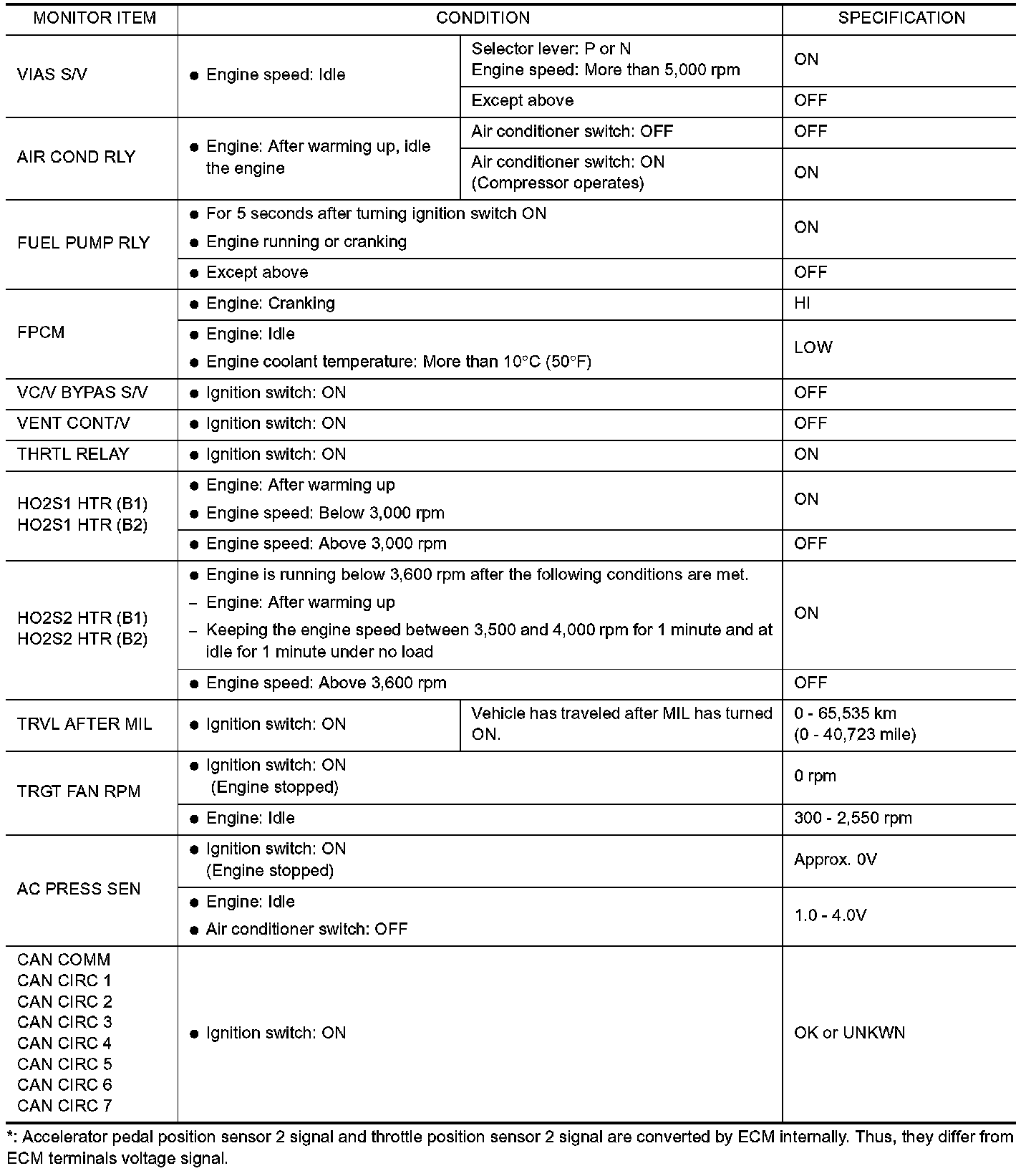 CONSULT-II Reference Value in Data Monitor Mode