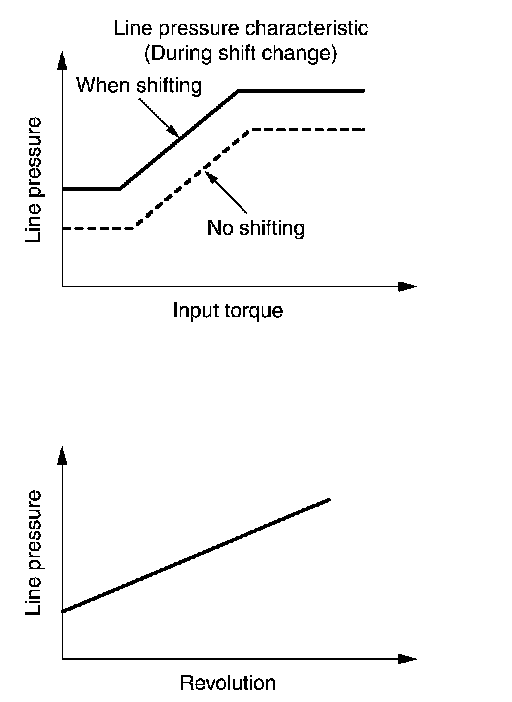 The necessary and adequate line pressure for shift change is set. For this reason, line pressure pattern setting corresponds to input torque and gearshift selection. Also, line pressure characteristic is according to engine speed, during engine brake operation.
