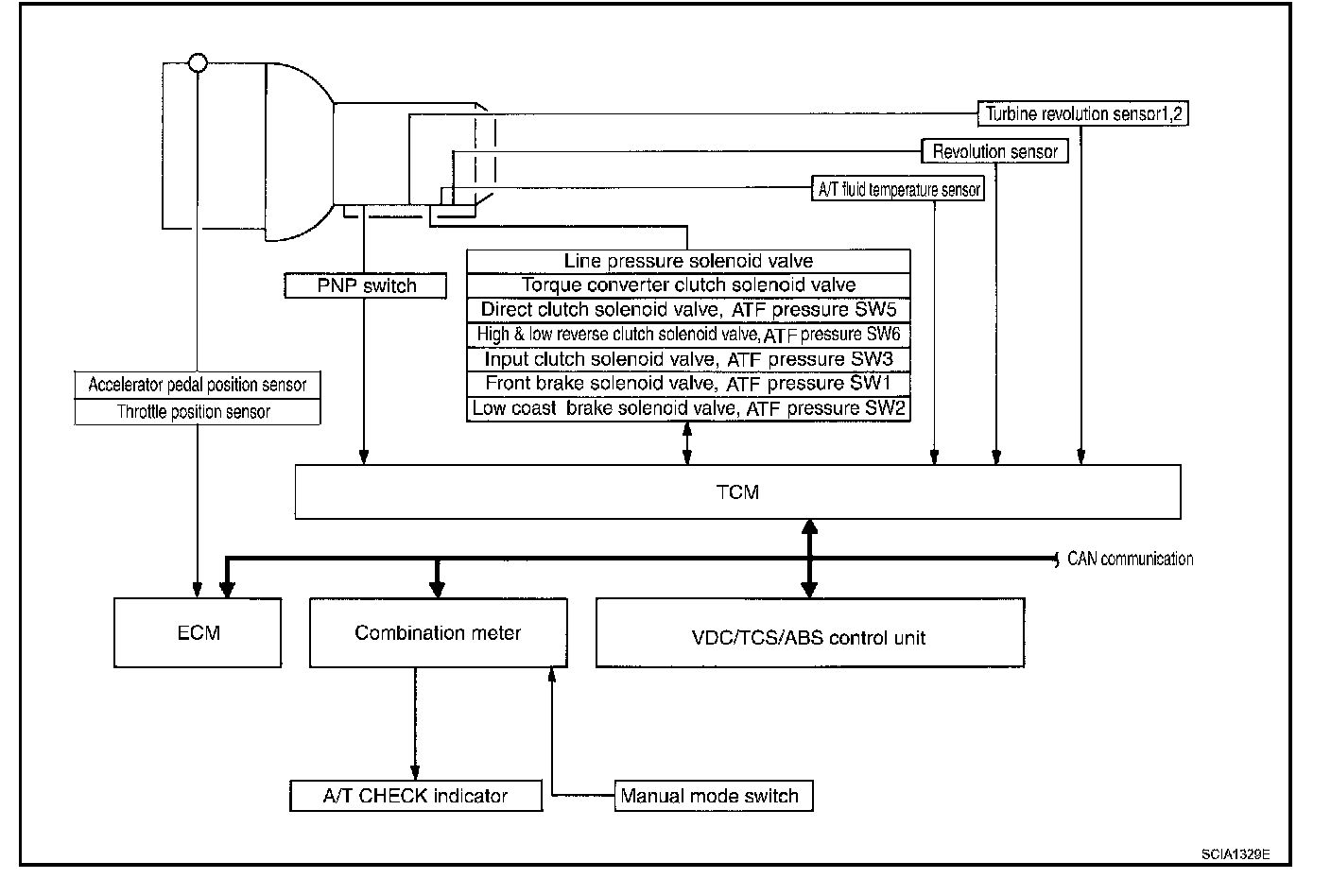 ^ Determine required line pressure, shifting point, lock-up operation, and engine brake operation.