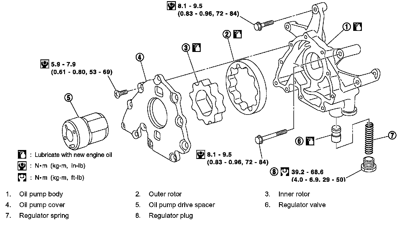 Oil pump 8.1 - 9.5 Nm (0.83 - 0.96 kg-m, 72 - 84 inch lbs.)