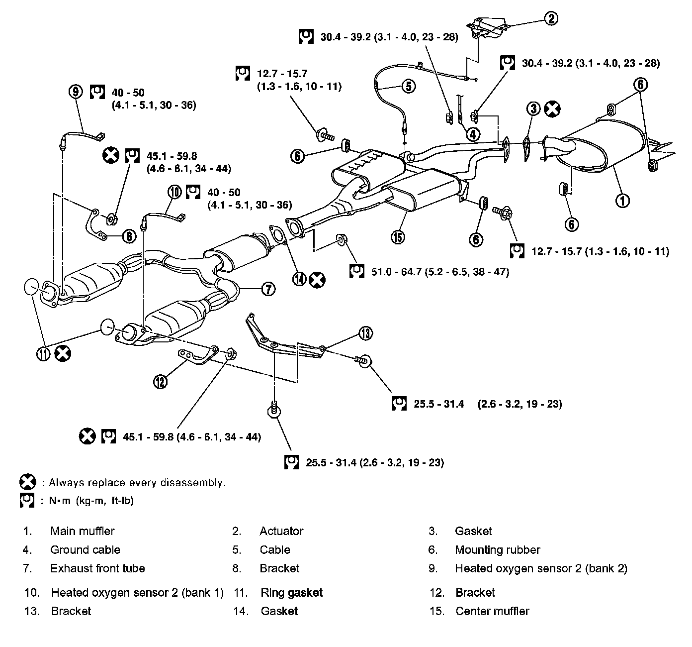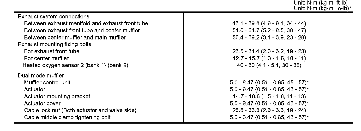 Exhaust manifold 26 - 30 Nm (2.6 - 3.1 kg-cm, 19 - 22 ft. lbs.)