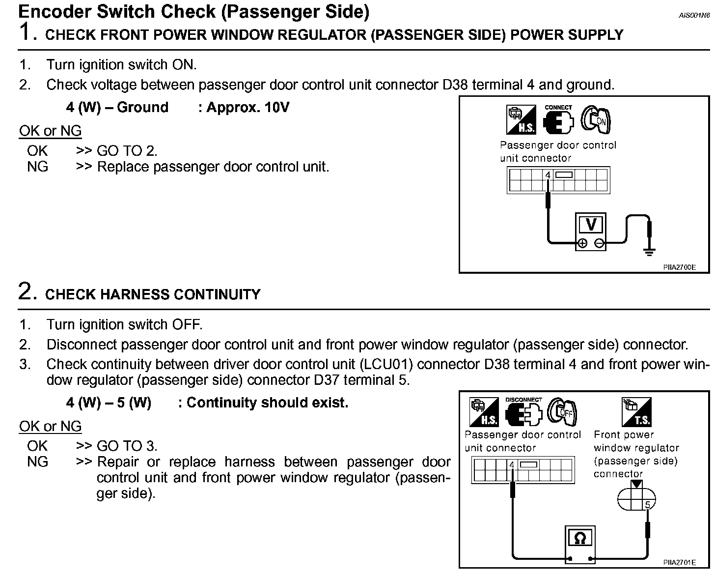 Encoder Switch Check (Passenger Side) (Steps 1 - 2):