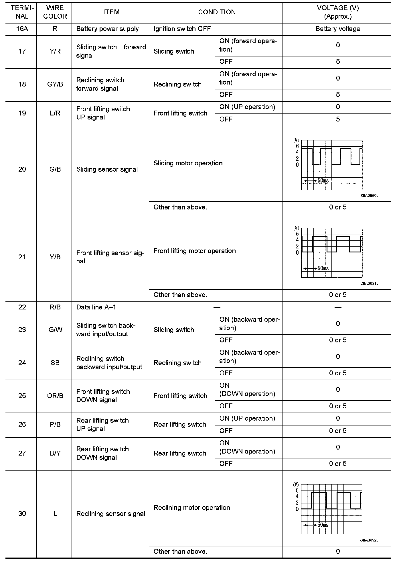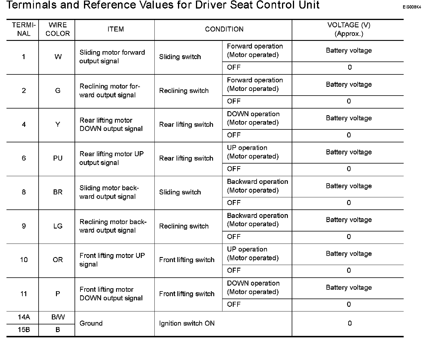 Terminals And Reference Values For Driver Seat Control Unit Part 2: