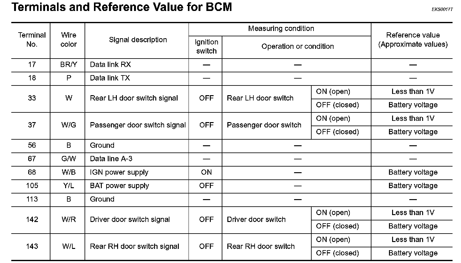 Terminals And Reference Values For BCM: