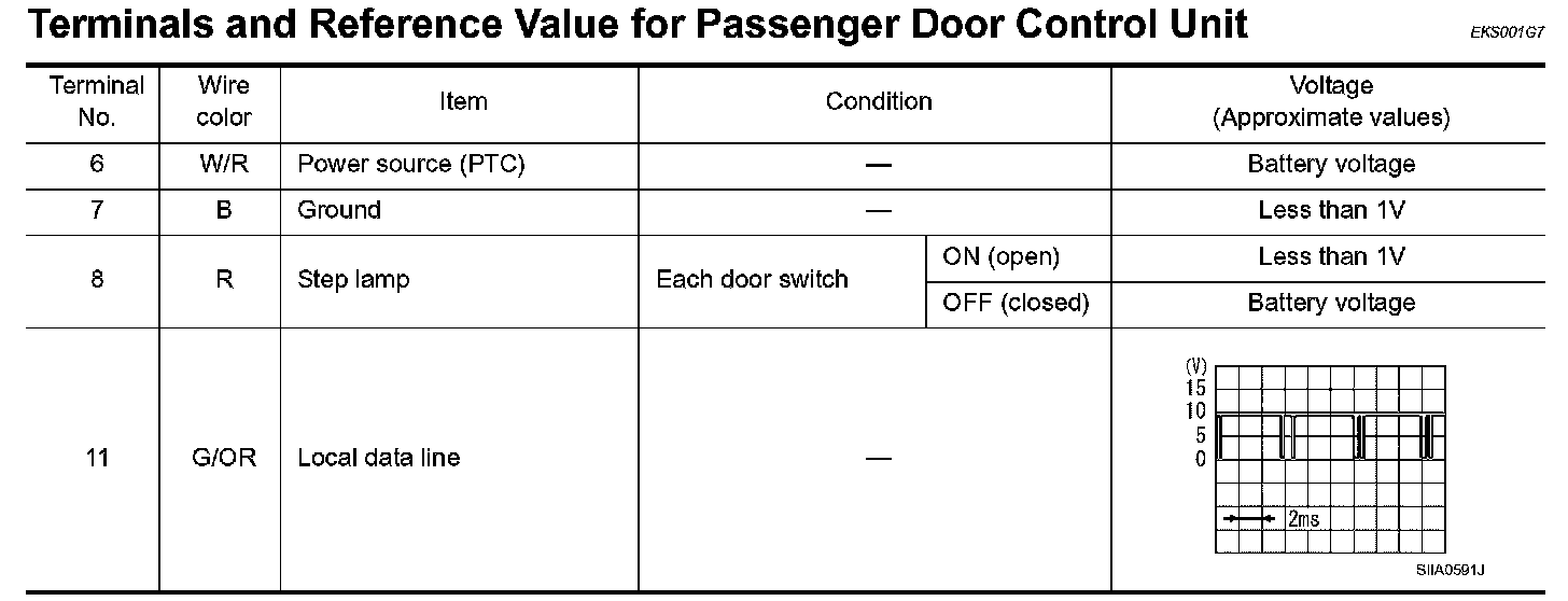 Terminals And Reference Values For Passenger Door Control Unit:
