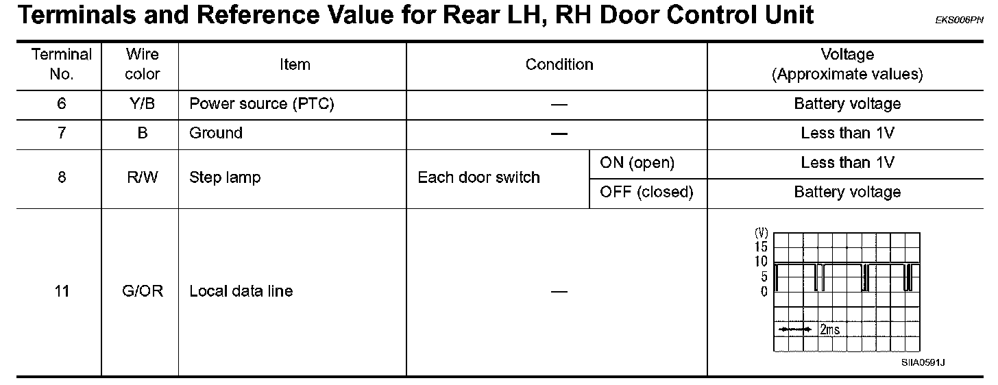 Terminals And Reference Values For Rear LH, RH Door Control Unit:
