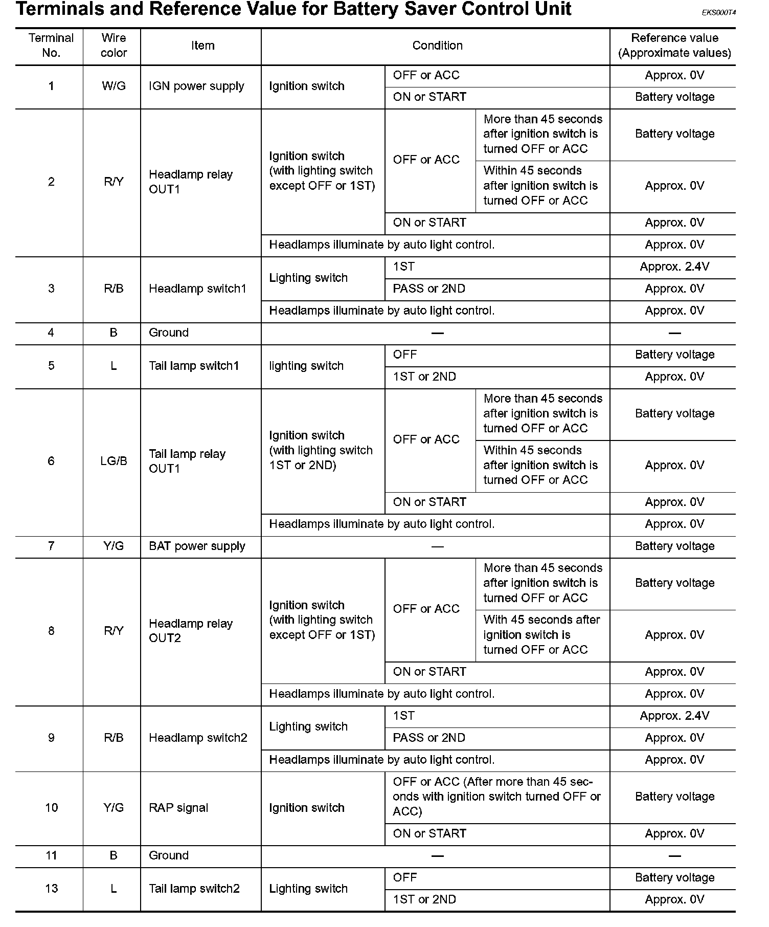 Terminals And Reference Values For Battery Saver Control Unit Part 1: