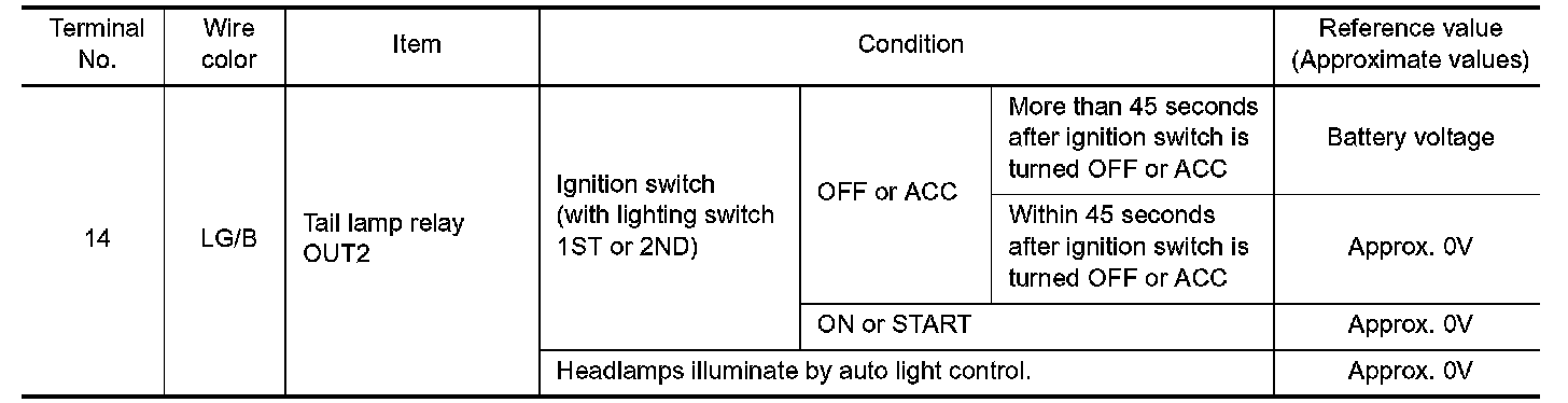 Terminals And Reference Values For Battery Saver Control Unit Part 2: