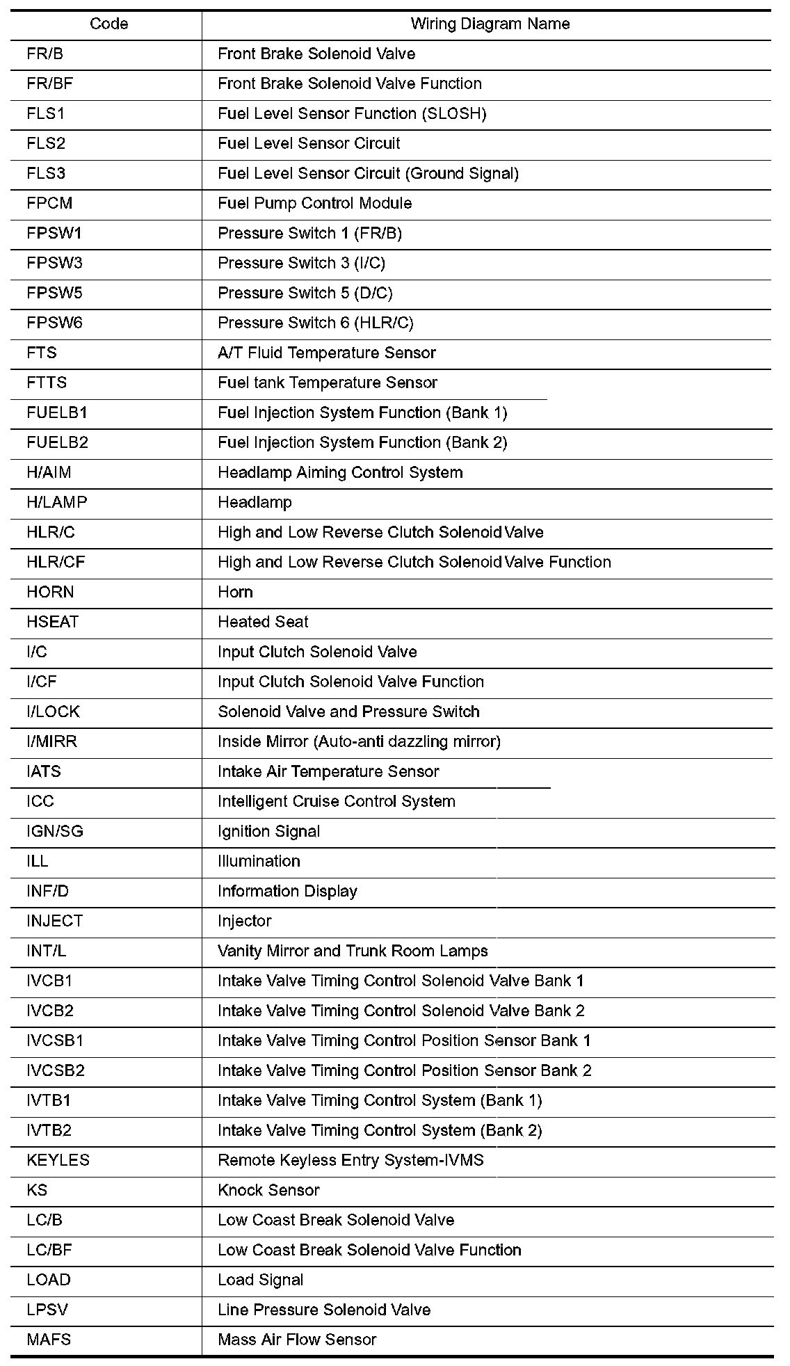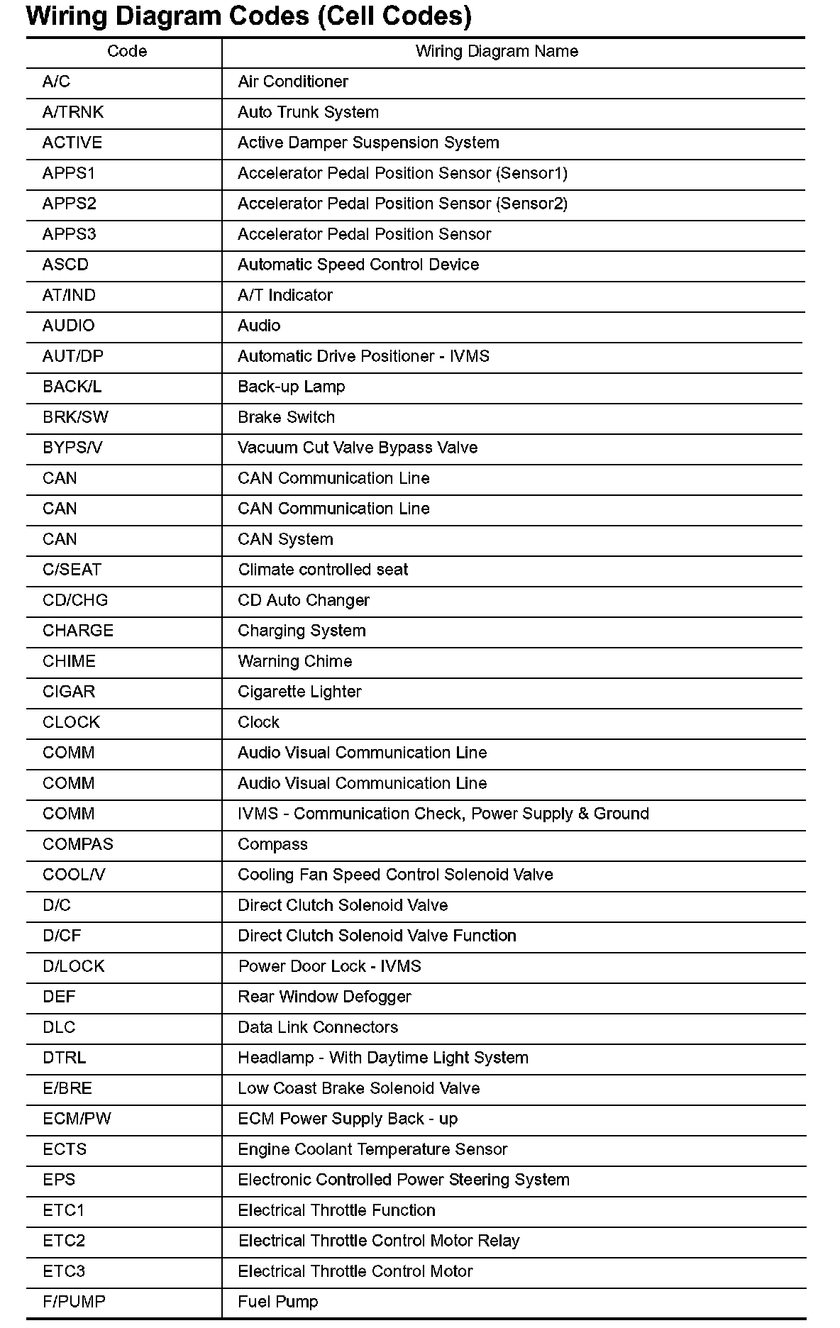 Wiring Diagram Codes/Abbreviations Part 3: