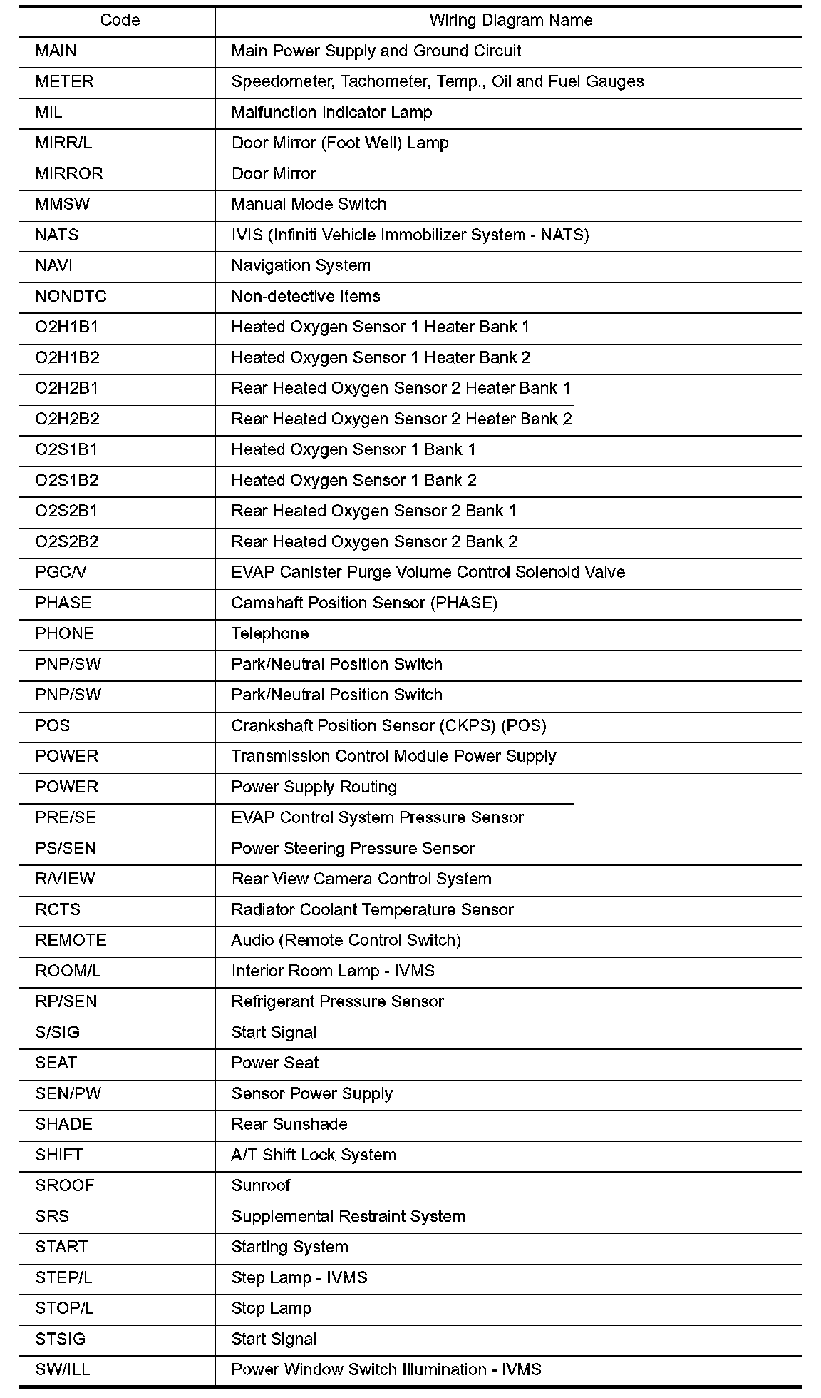 Wiring Diagram Codes/Abbreviations Part 1: