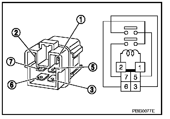Check continuity between relay terminals 3 and 5, 6 and 7.