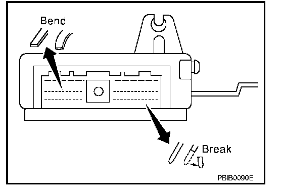 _ When connecting or disconnecting pin connectors into or from ECM, take care not to damage pin terminals (bend or break).