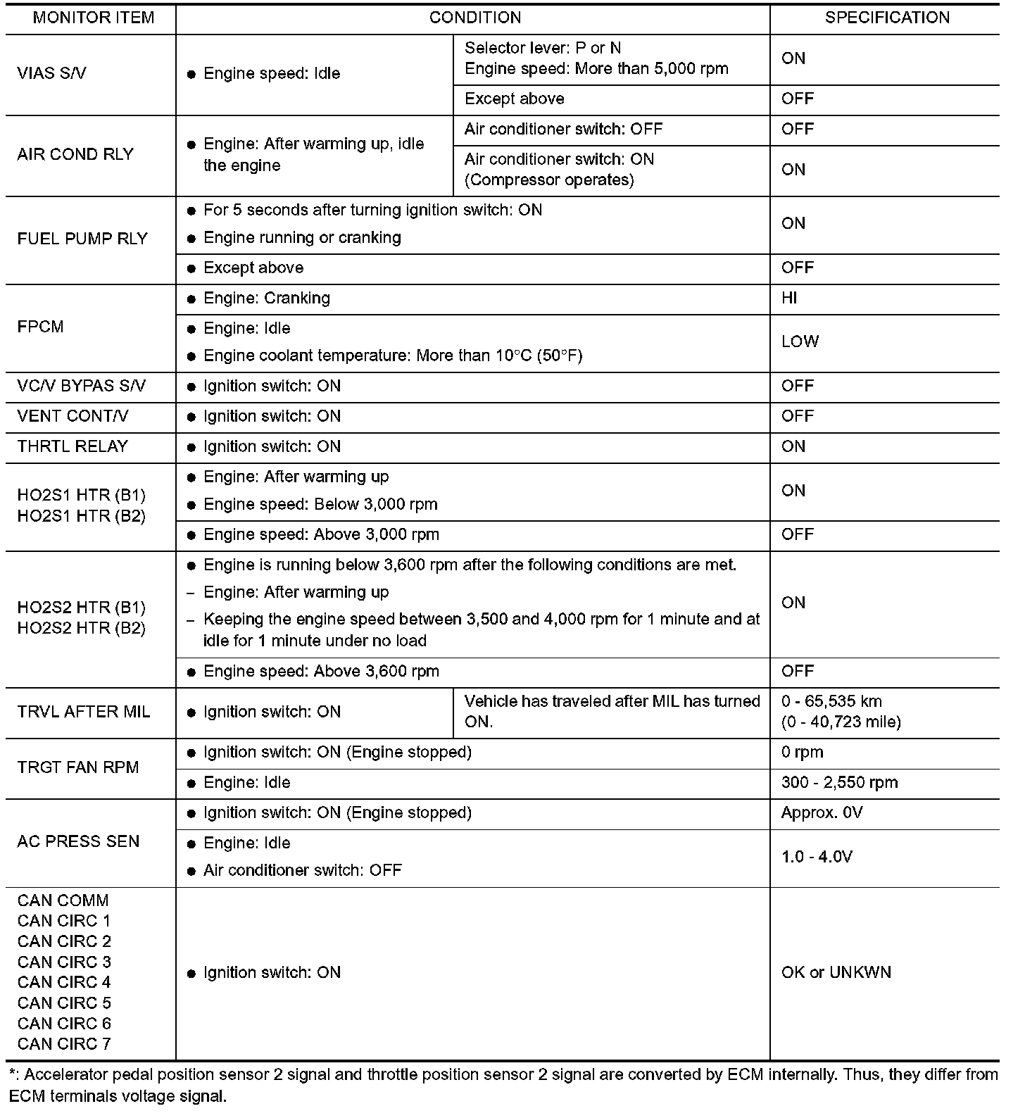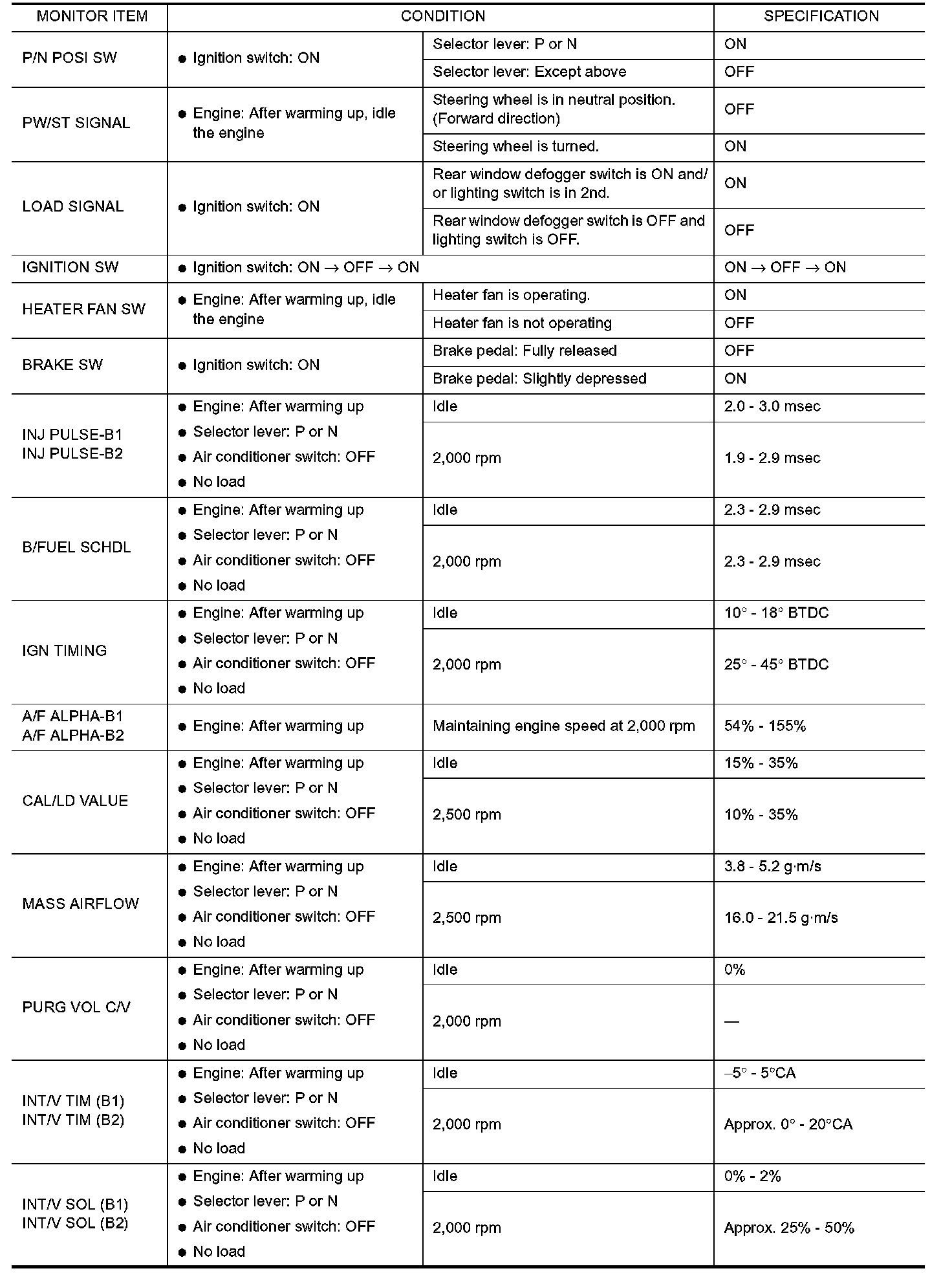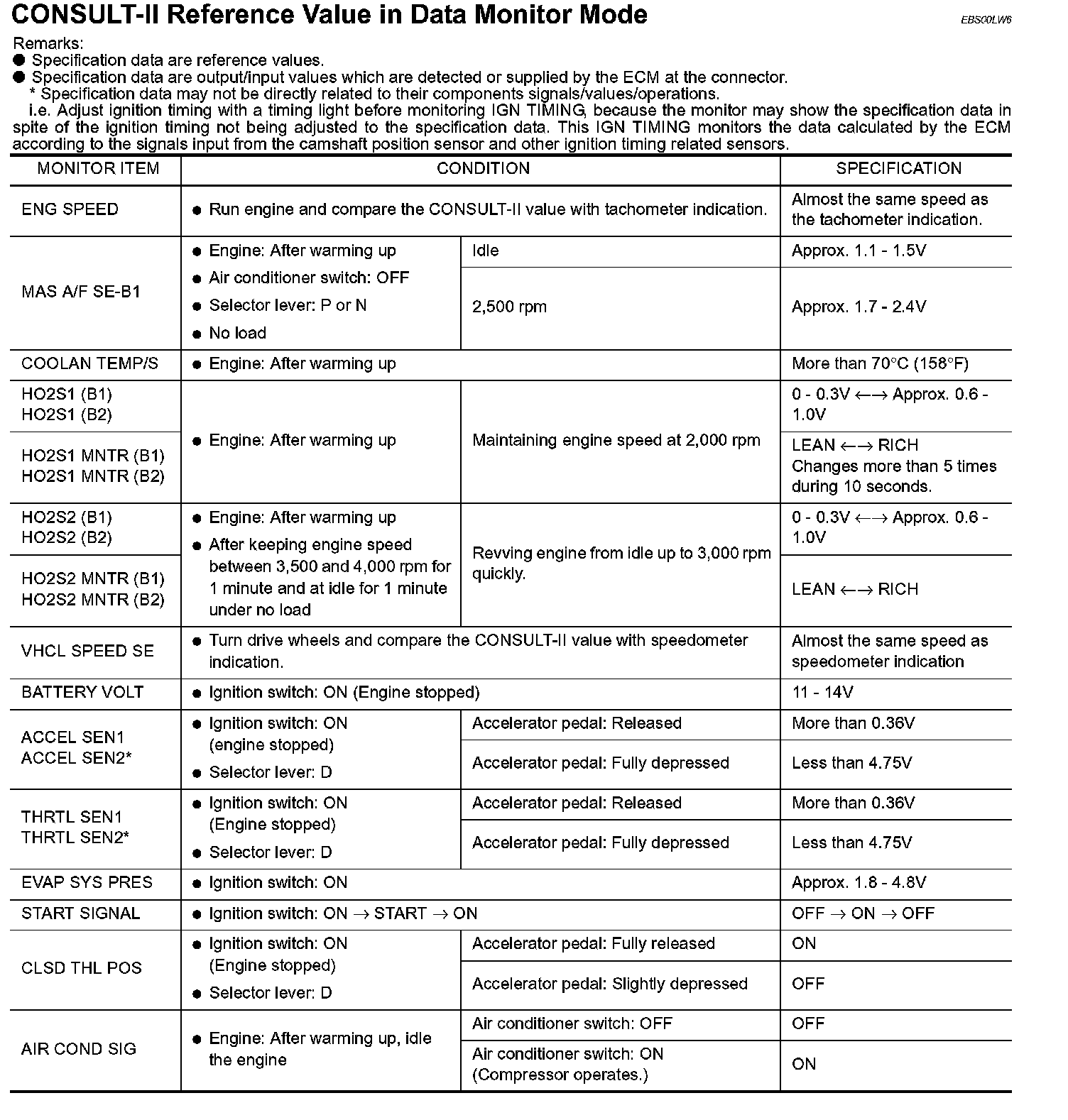 CONSULT-II Reference Value in Data Monitor Mode