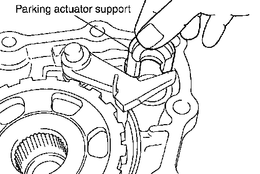 ^ If the contact surface on parking actuator support, parking pawl, etc. has excessive wear, abrasion, bend, or any other damage, replace the components.