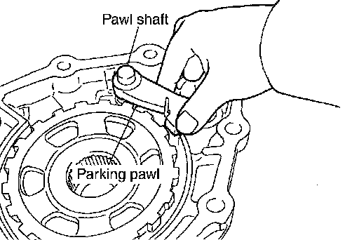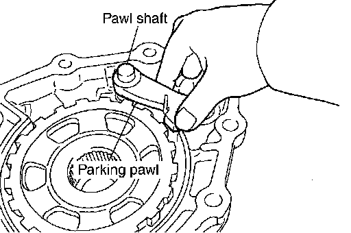 2. Install parking pawl and pawl shaft in output shaft & companion flange complement.
