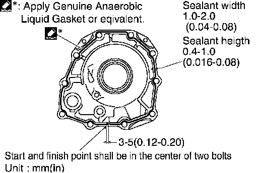 4. Apply recommended sealant (Genuine Anaerobic Liquid Gasket or equivalent. Refer to "Recommended Chemical Products and Sealants".) to output shaft & companion flange complement as shown in illustration.