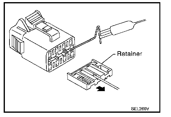 - Some connectors do not have a notch above each terminal. To probe each terminal, remove the connector retainer to make contact space for probing.