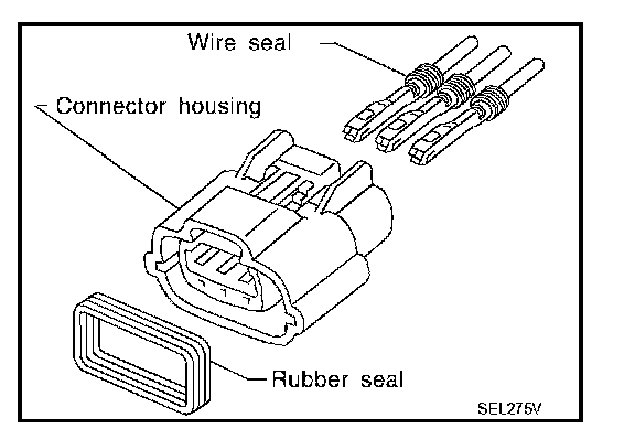- The rubber seal may come off when connectors are disconnected. Whenever connectors are reconnected, make sure the rubber seal is properly installed on either side of male or female connector.