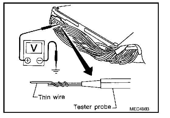 3. Perform all voltage measurements with the connector connected. Extend tester probe as shown to perform tests easily.