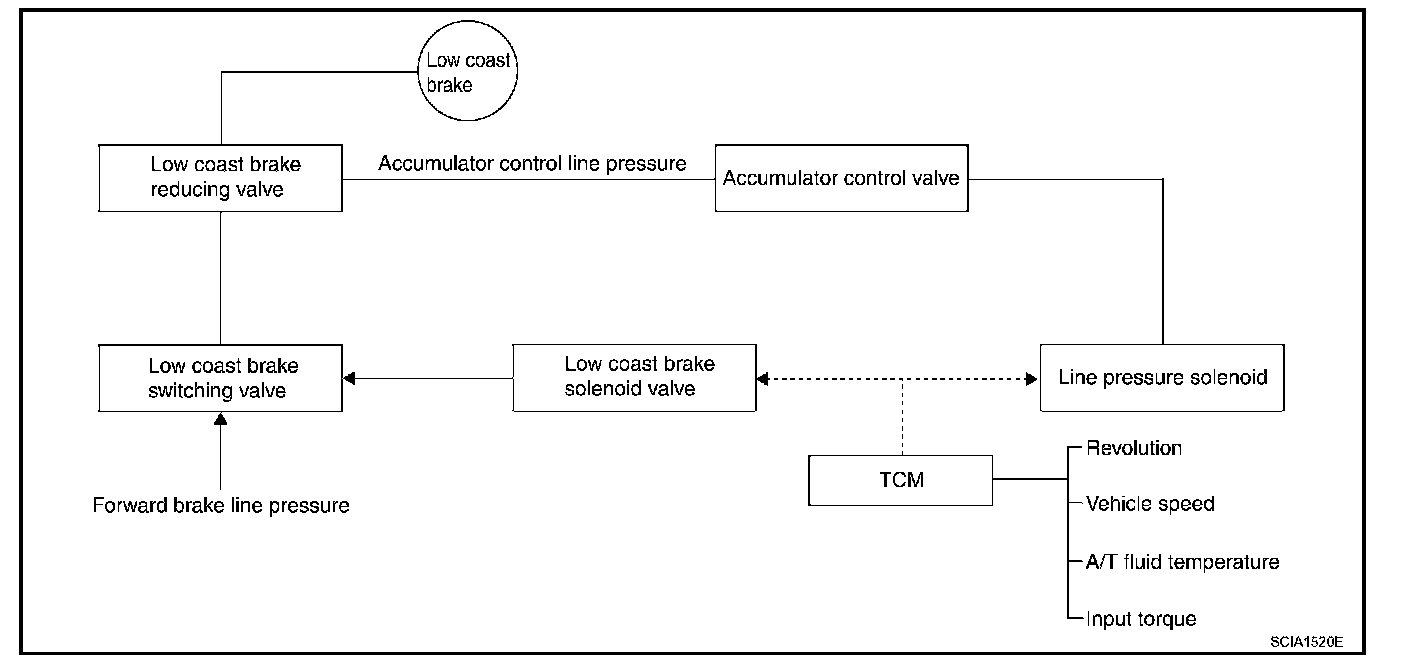 ^ The operation of the low coast brake solenoid switches the low coast brake switching valve and controls the coupling and releasing of the low coast brake. The low coast brake reducing valve controls the low coast brake coupling force.