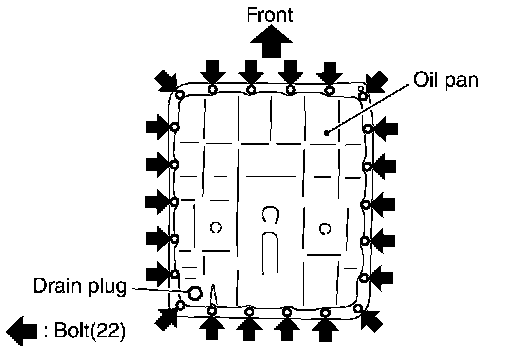 Tighten oil pan mounting bolts to the specified torque in numerical order shown in the figure after temporarily tightening them.