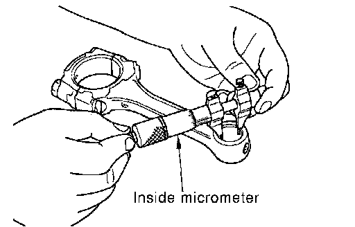 ^ Install connecting rod bearings to connecting rod and cap, and tighten the connecting rod nut to the specified torque. Refer to "ASSEMBLY". Using a inside micrometer measure the inner diameter of connecting rod bearing.