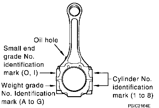 ^ If clearance exceeds the limit, select proper connecting rod bearing according to connecting rod big end diameter and crankshaft pin journal diameter to obtain specified bearing oil clearance. Refer to "HOW TO SELECT CONNECTING ROD BEARING".