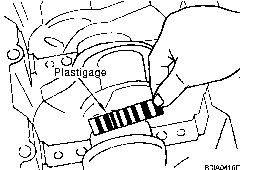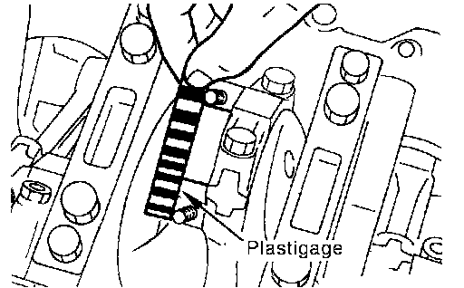 ^ Cut a plastigage slightly shorter than the bearing width, and place it in crankshaft axial direction, avoiding oil holes