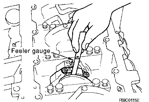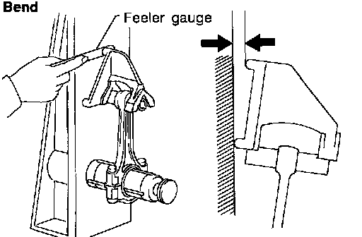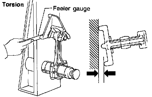 ^ Measure the side clearance between connecting rod and crankshaft arm with feeler gauge.