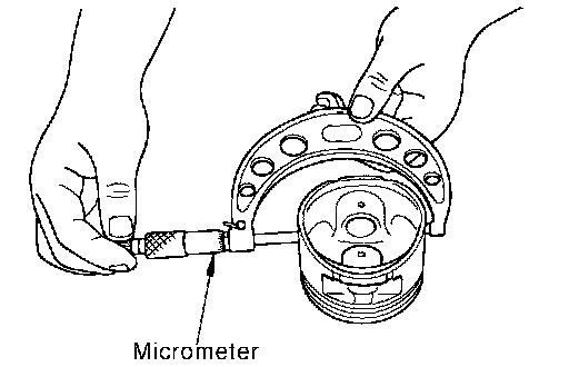 Measure the inner diameter of piston pin bore with an inside micrometer.