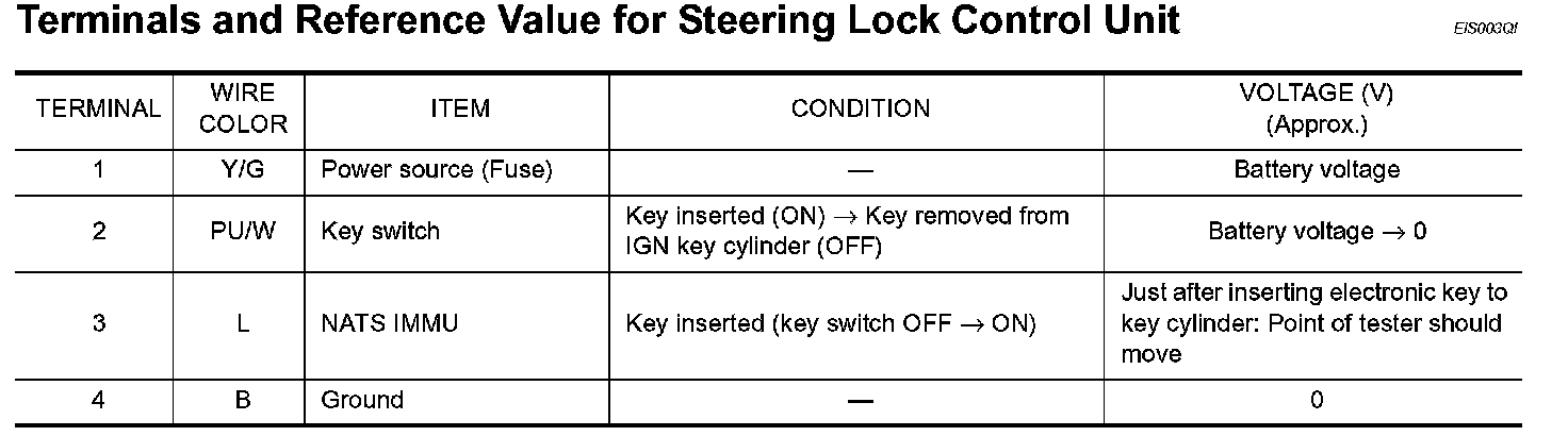 Terminals And Reference Value For Steering Lock Control Unit: