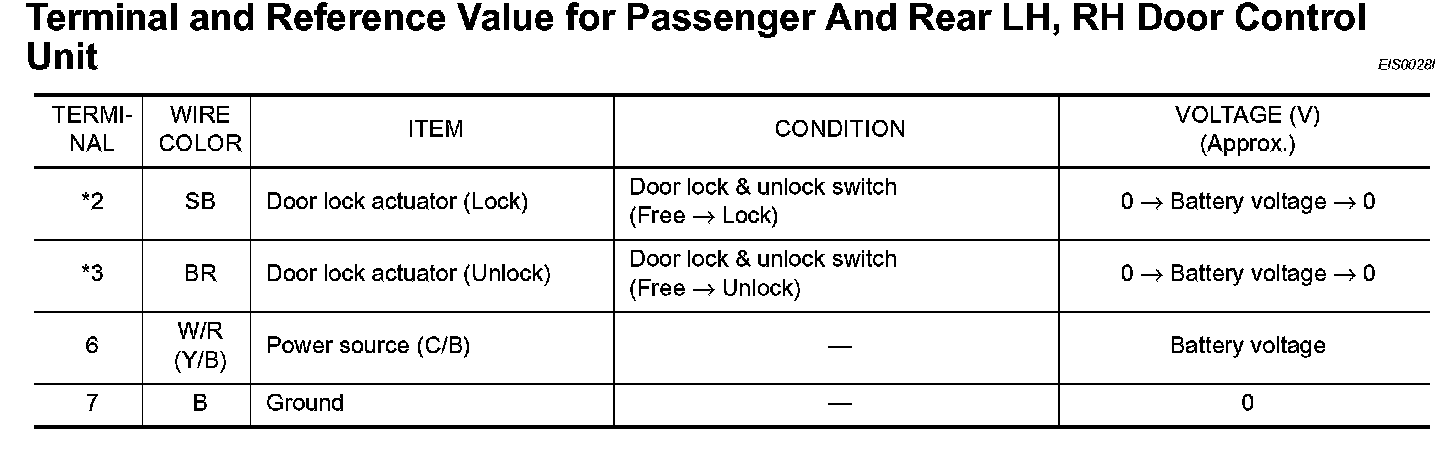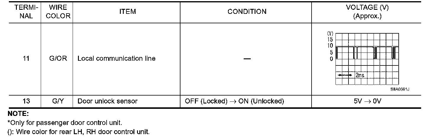 Terminal And Reference Value For Passenger And Rear LH, RH Door Control Unit Part 1: