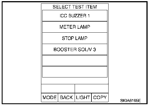 2. Touch any of "ICC BUZZER 1", "METER LAMP", "STOP LAMP" and "BOOSTER SOL/V 3" on selection screen.