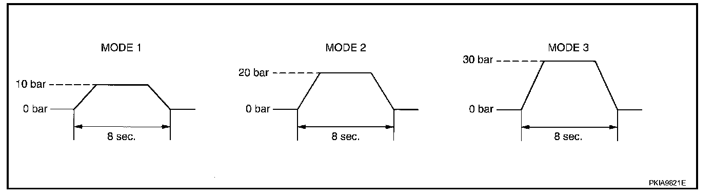 - Touch any of "MODE 1", "MODE 2", "MODE 3" to check that following operation condition is caused by operating monitor and brake pedal.