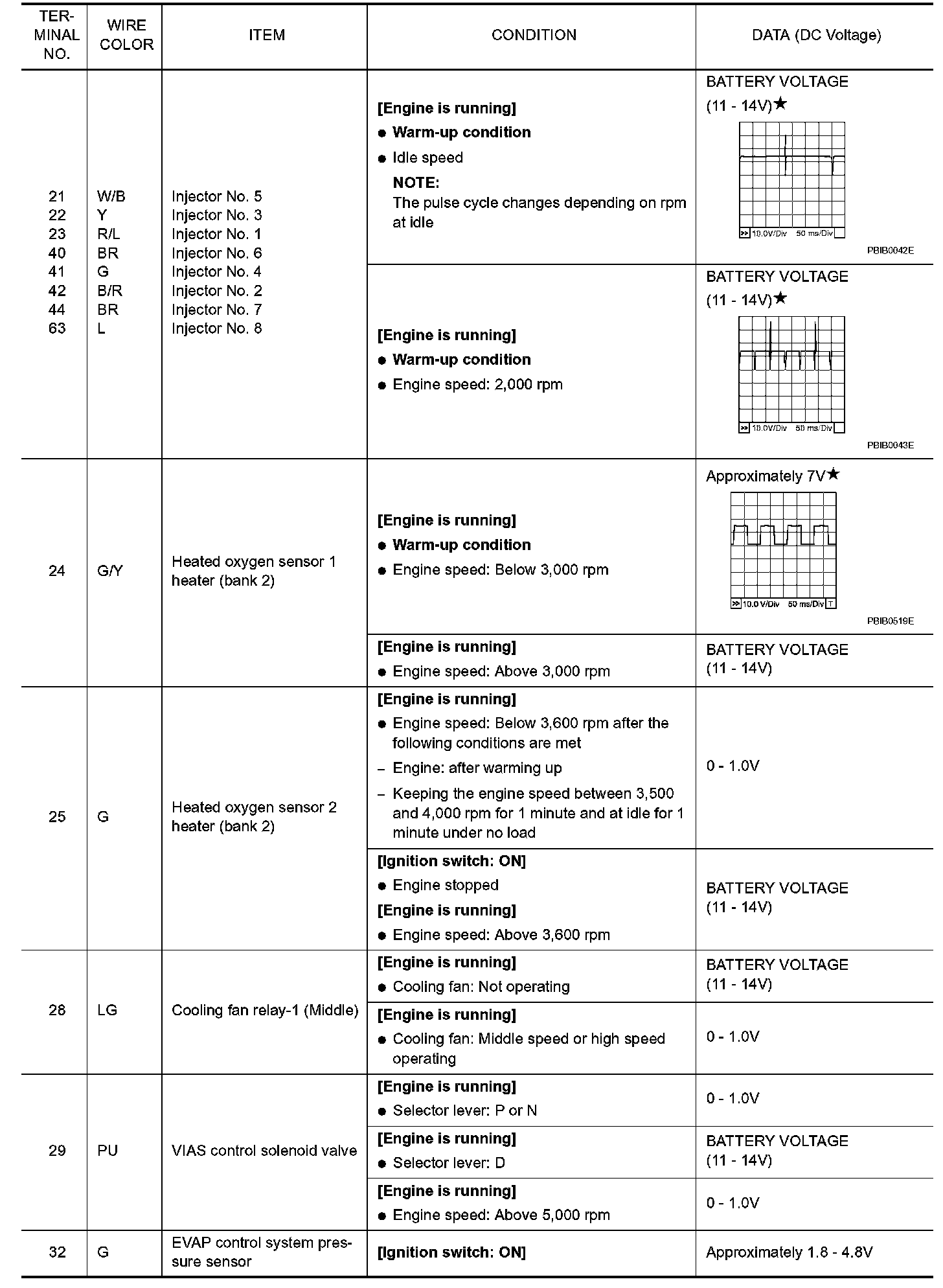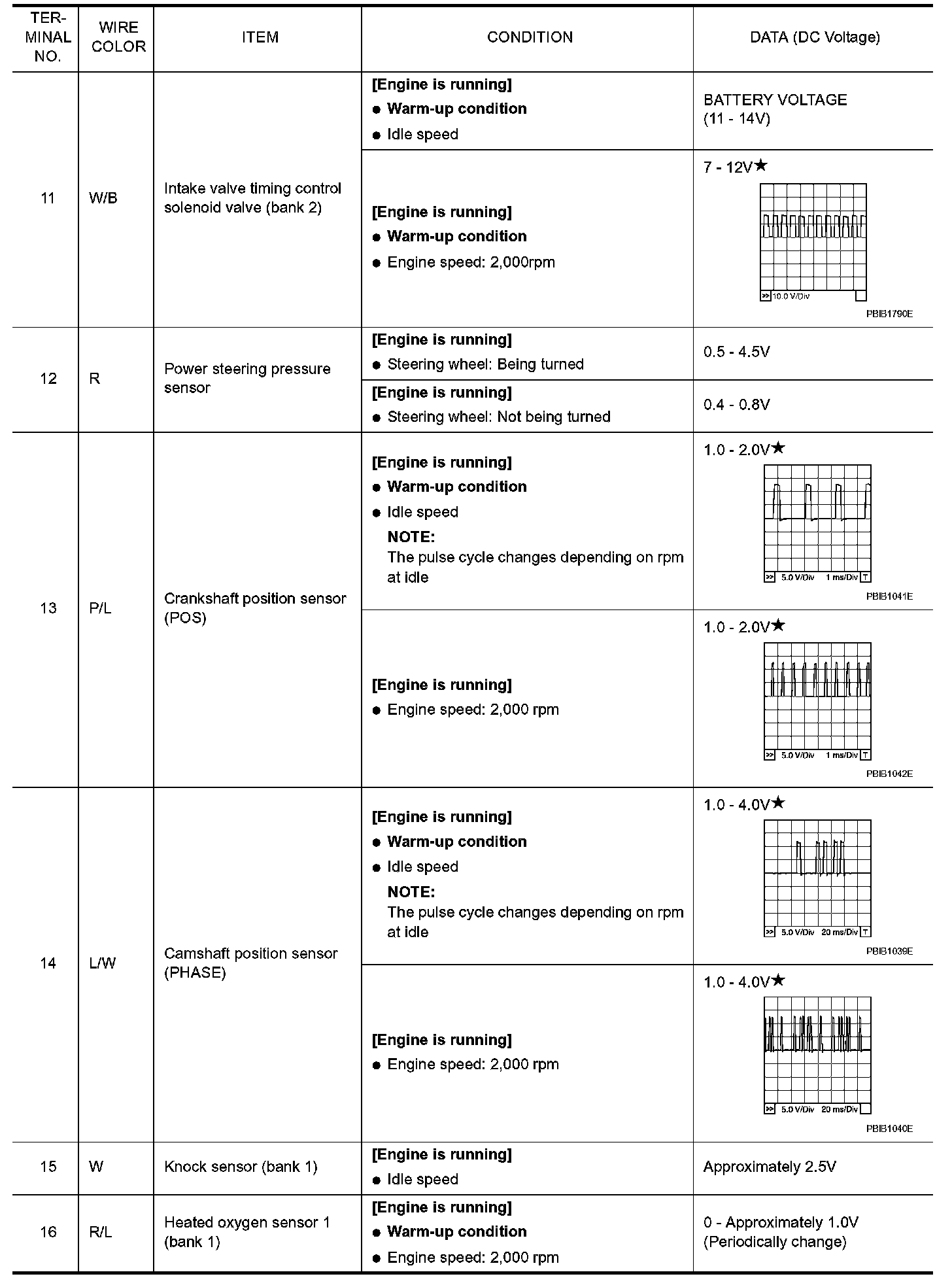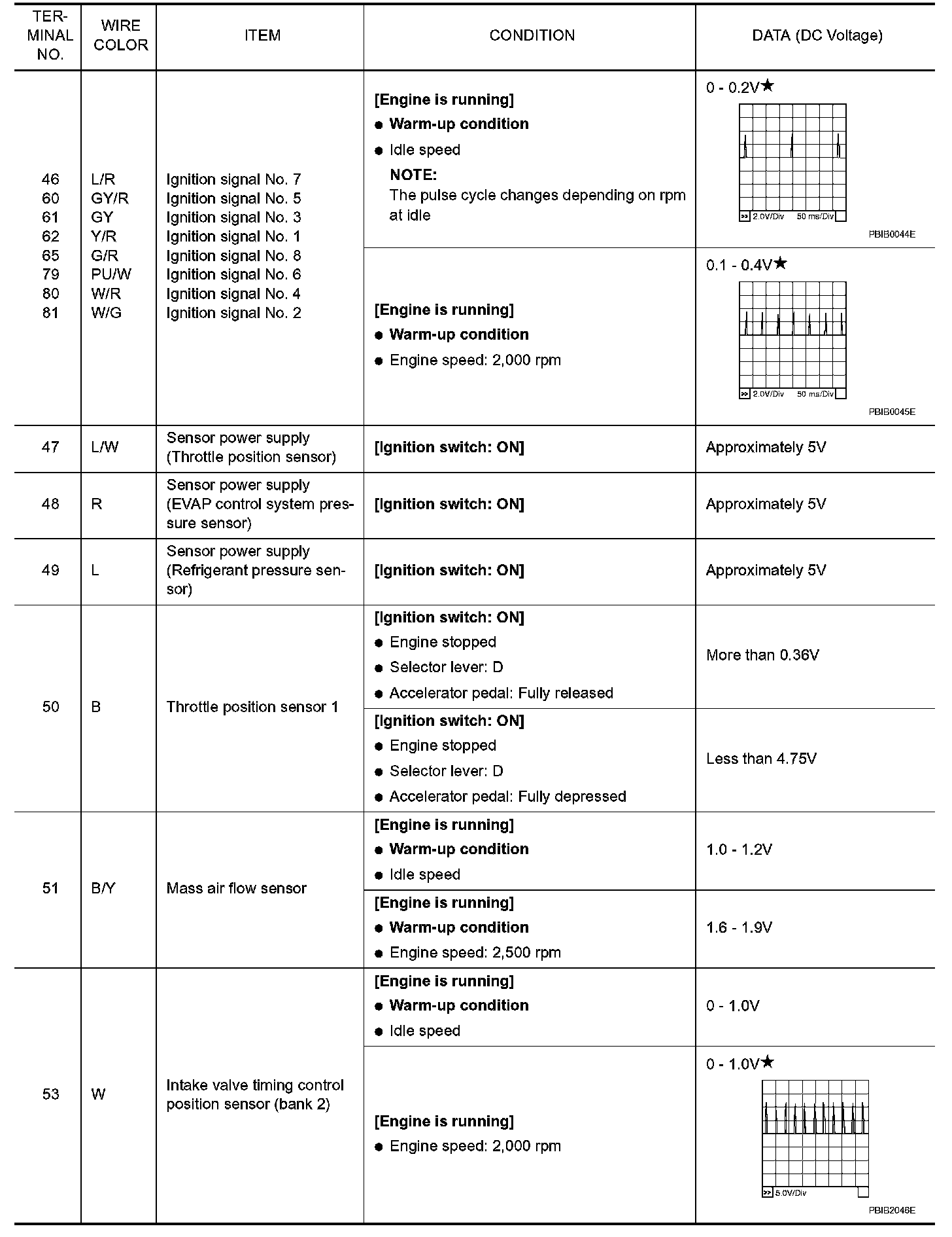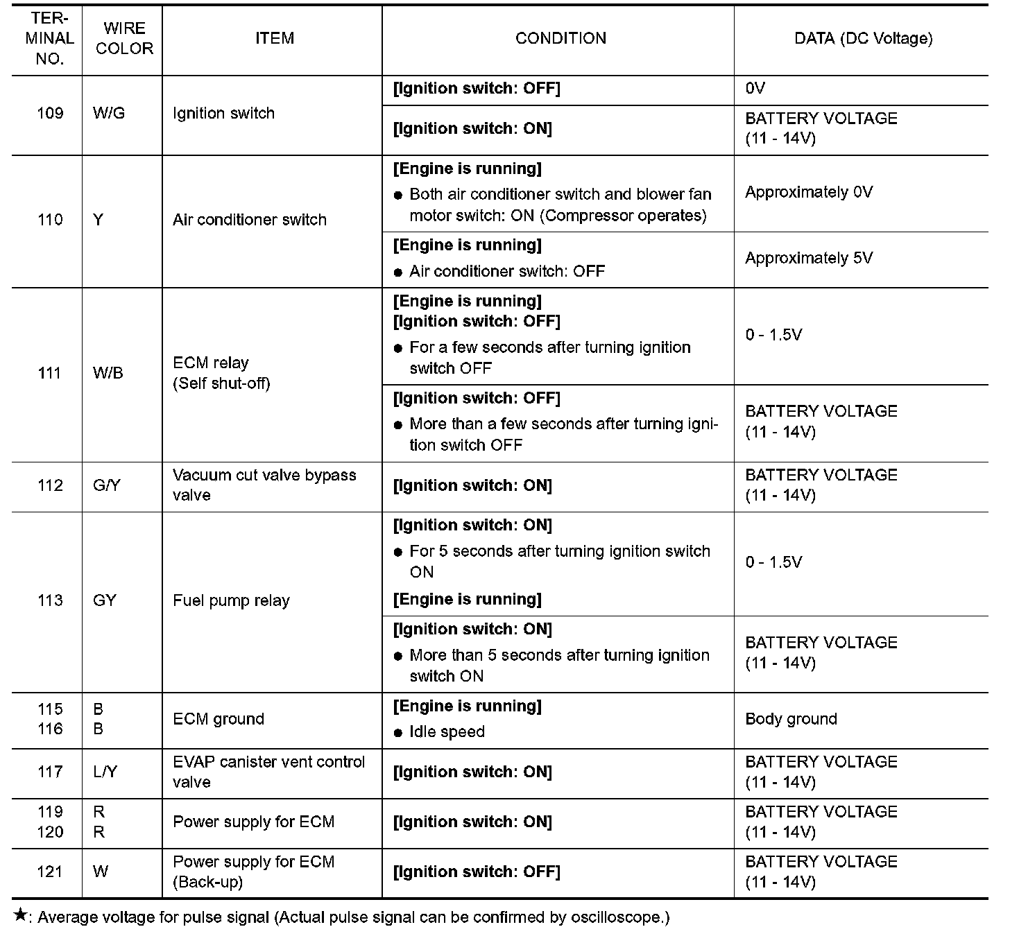 Specification data are reference values and are measured between each terminal and ground. Pulse signal is measured by CONSULT-II.